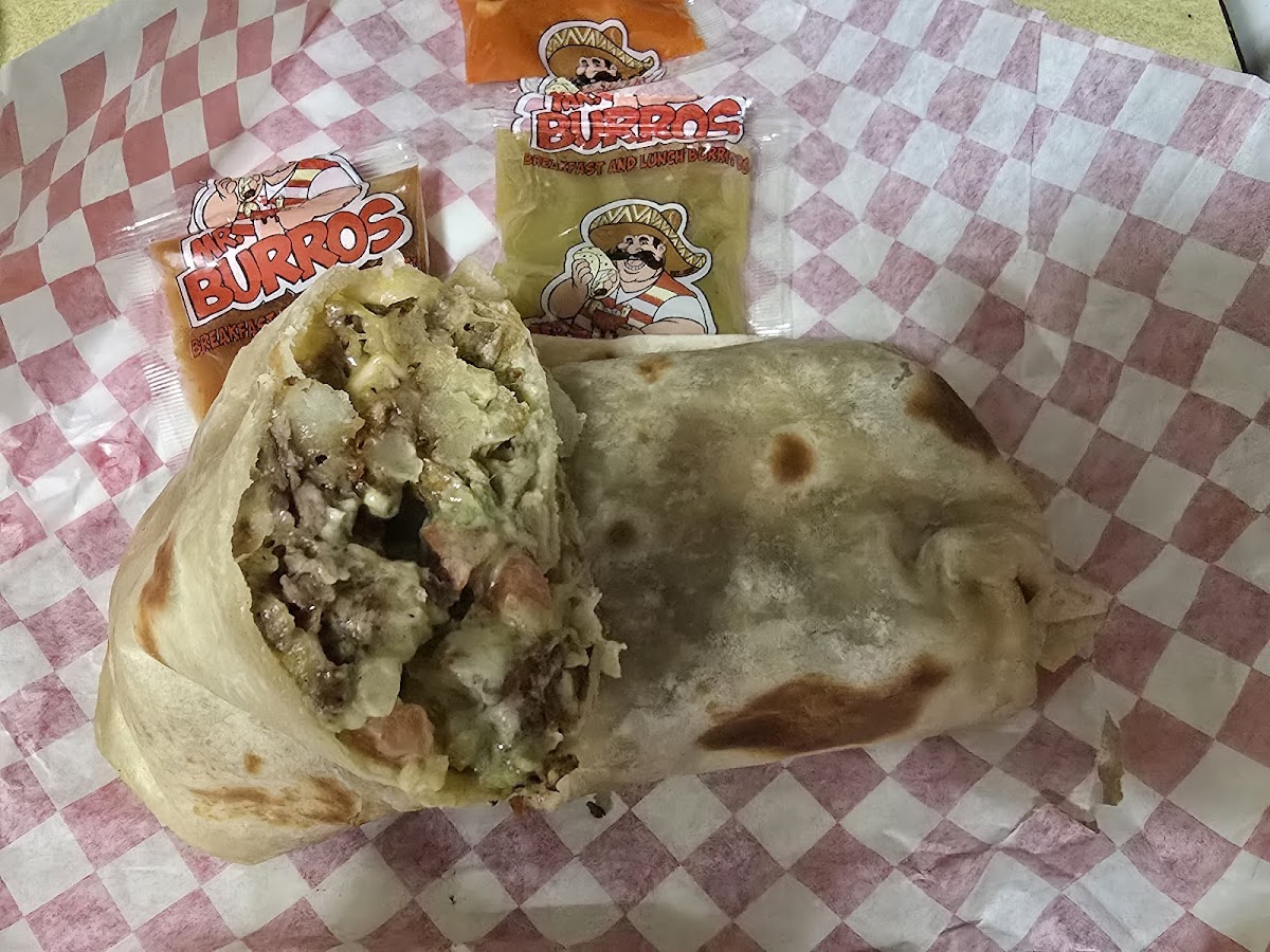 This is my first time visiting Mr Burros. The staff is very friendly and explained me all the different types of breakfast burritos. I ended up buying the Breakfast Special, it was god. You get the chance to try 3 different salsas that come with it. The place has a very small dining area and I noticed most people taking their orders to go or had called in their takeout orders. Parking area is small too, but I was lucky to find a space. Every looked cleaned inside and organized. I definitely recommend Mr Burros if you’re in Yuma area, you can give them a chance to try their offerings.