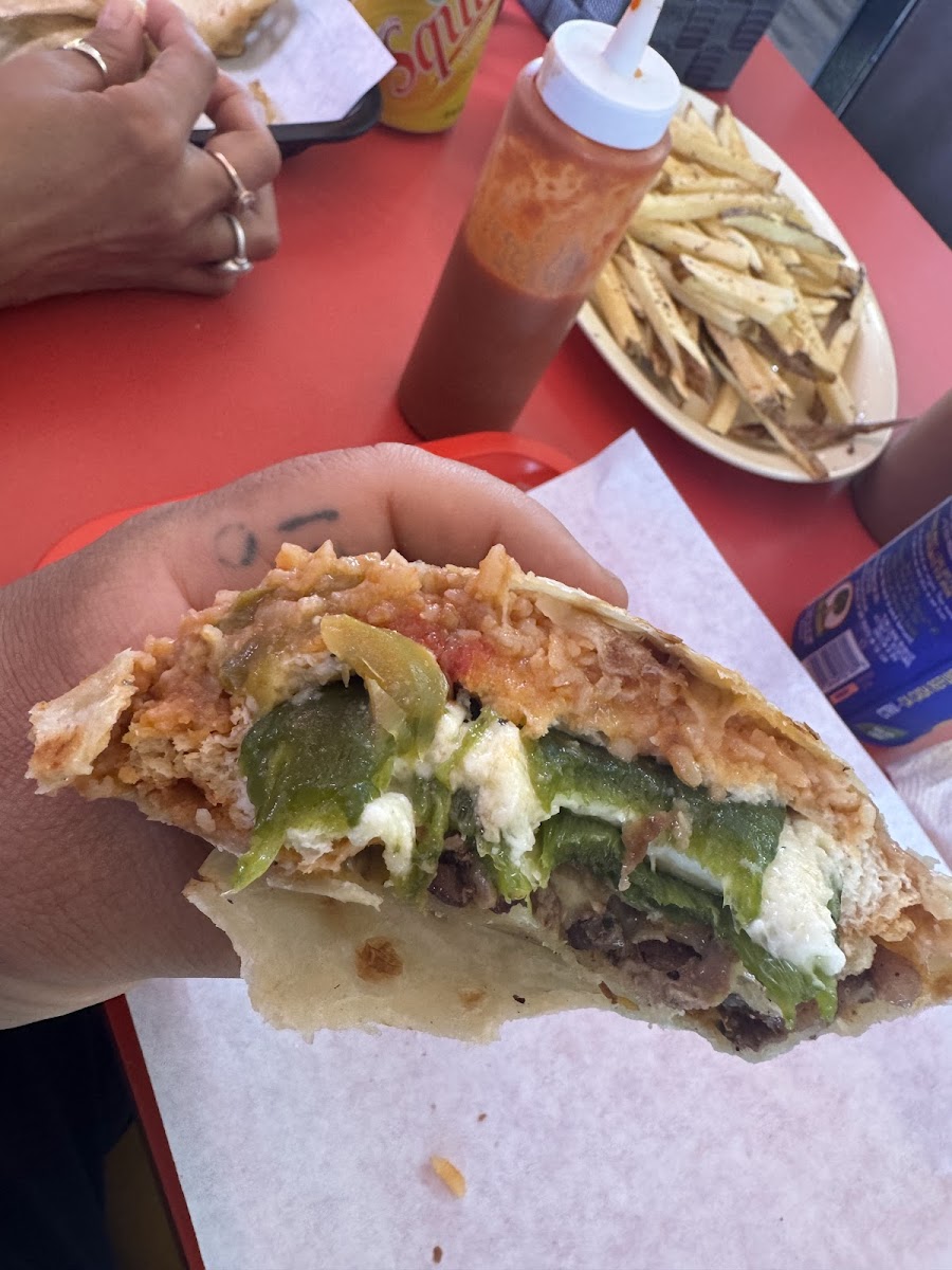 We placed a take out order based on a recommendation and man they DID NOT DISAPPOINT!!! I got the Chile Relleno (added carne asada). It was delicious and filling! They have custom sauces you can use to turn up the spice if you want. I ate mine as it was made. The portions are worth every cent! And for people with braces, it won’t mess up your brackets (but keep your flossers handy). The place doesn’t have many tables or sit down space so I suggest ordering to go. Definitely recommend!!!